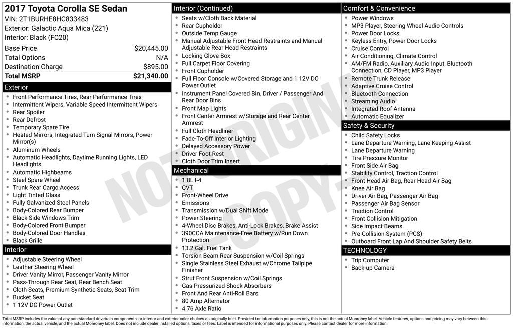 2017 2017 Toyota Corolla SE SE Aqua
