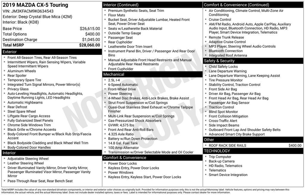 We invite you to experience the 2019 Mazda CX-5 Touring firsthand. Visit our showroom today and let our knowledgeable sales team guide you through all the features and capabilities that make this crossover a standout in its class. Drive home in the vehicle that will elevate your daily commute and weekend adventures.