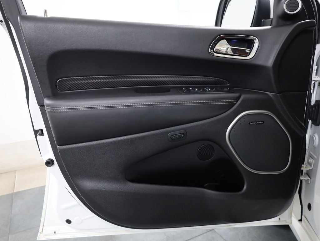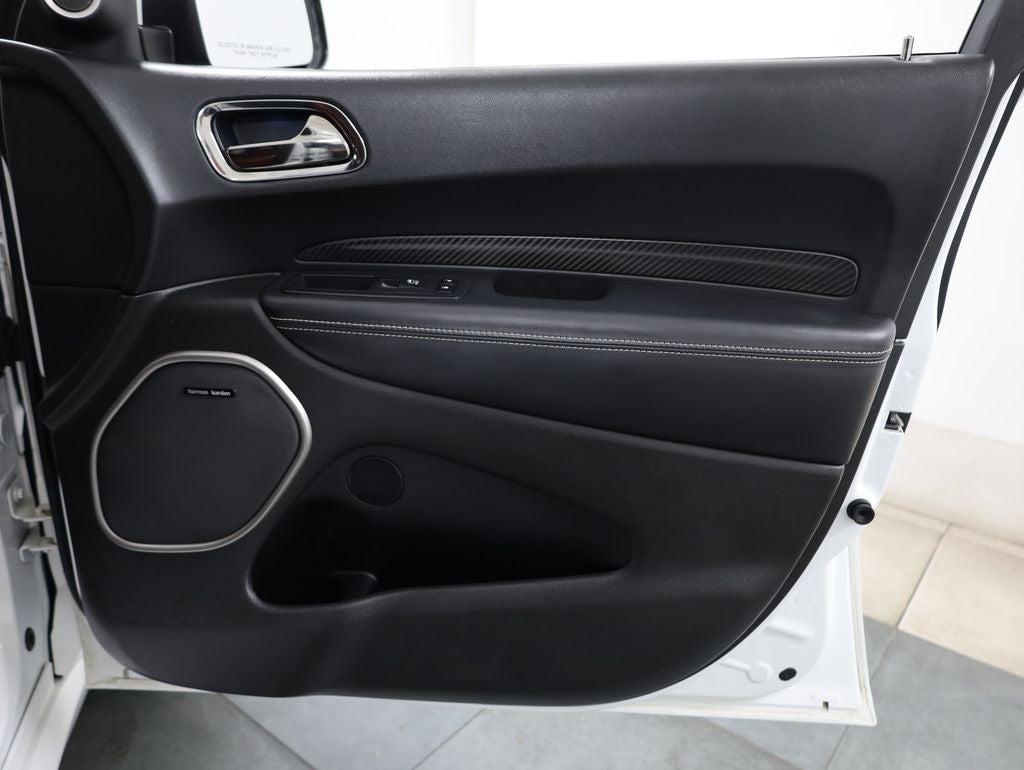 Meticulously equipped, this Durango SRT boasts an impressive array of premium features, including - a Premium Interior Group with a premium-wrapped instrument panel bezel and real carbon fiber accents, a Technology Group with advanced driver-assistance technologies like Adaptive Cruise Control and Full-Speed Forward Collision Warning Plus, a Rear DVD Entertainment Center with Blu-Ray compatibility, and high-performance Laguna leather seats with a unique demonic red accent. The impressive 19-speaker Harman Kardon audio system with an 825-watt amplifier and subwoofer ensures an unparalleled listening experience, while the power sunroof and blind spot monitoring with cross-path detection add to the Durango's refined and tech-savvy persona.