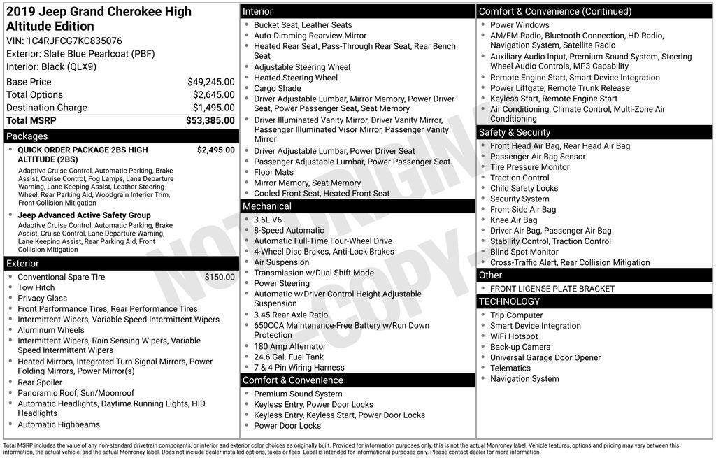 Clean CARFAX. 2019 Jeep Grand Cherokee High Altitude Pacific Blue Clearcoat