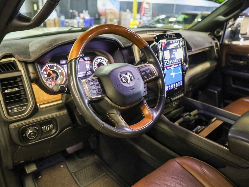 Beyond its impressive capabilities, the Laramie Longhorn trim elevates the driving experience with a wealth of premium features. The 12-inch touchscreen display with Uconnect 4C navigation and Android Auto/Apple CarPlay integration keeps you connected and entertained on the go. The 17-speaker high-performance audio system delivers a concert-quality listening experience, while the power deployable running boards and surround-view camera system enhance both functionality and convenience.