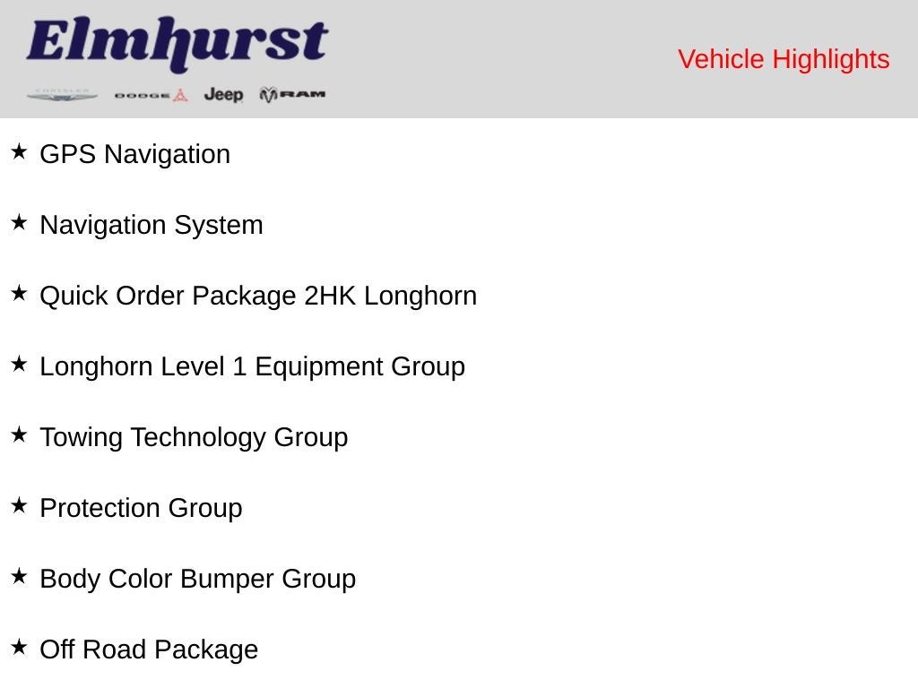 - Longhorn Level 1 Equipment Group with 17-speaker high-performance audio, power deployable running boards, and more