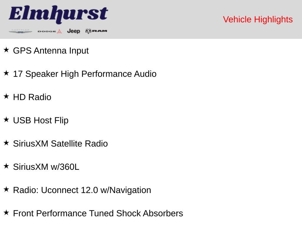 - 4-Wheel Disc Brakes w/4-Wheel ABS, Front And Rear Vented Discs, Brake Assist and Hill Hold Control