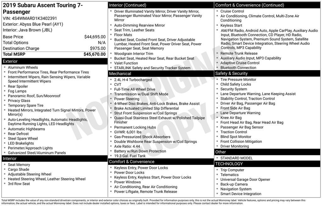 - Vehicle Name: Subaru Ascent