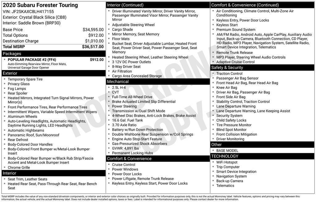 - Vehicle Name: Subaru Forester