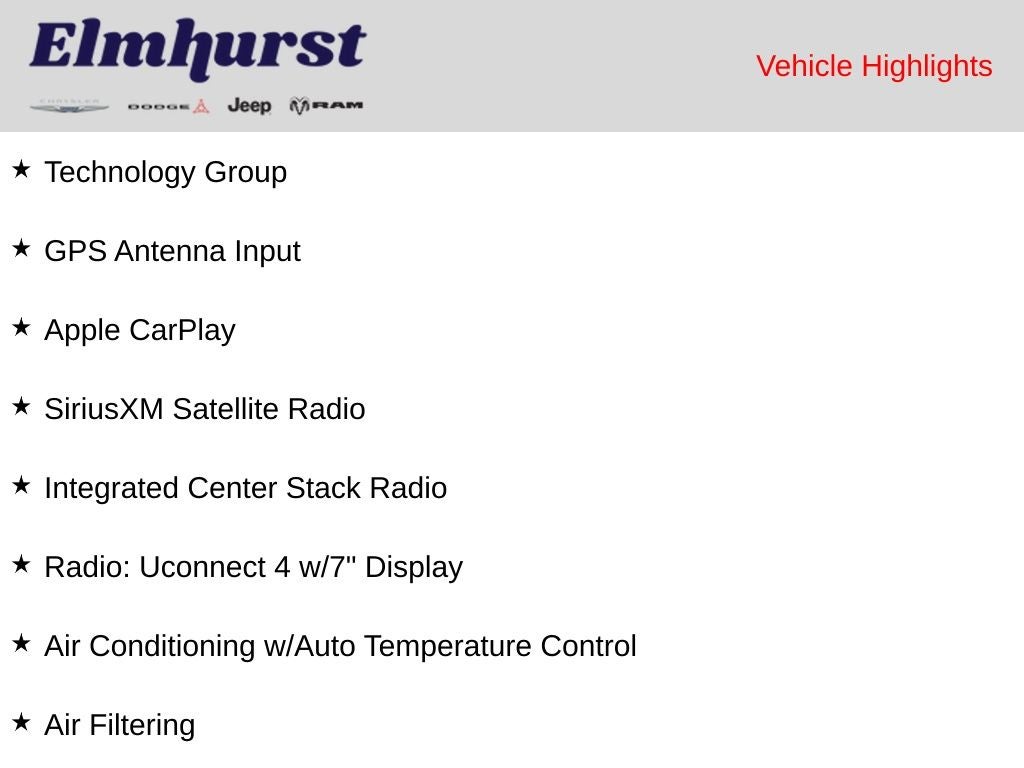 - Technology Group (includes Apple CarPlay, Android Auto, 7 Touchscreen, and more)