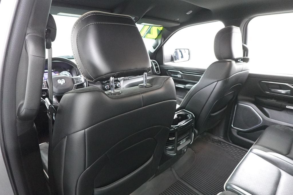 Stepping inside, you'll be greeted by a spacious and well-appointed cabin, featuring premium leather-trimmed bucket seats and a full-length upgraded floor console. The Laramie Level 1 Equipment Group introduces a host of advanced technology and convenience features, including remote tailgate release, blind spot and cross-path detection, rain-sensitive windshield wipers, and front/rear park assist with stop.
