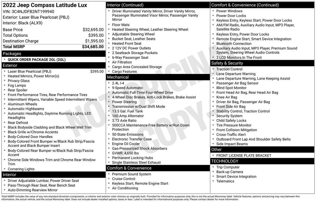 2022 2022 Jeep Compass Latitude Lux Latitude Lux Laser Blue Pearlcoat CARFAX One-Owner.