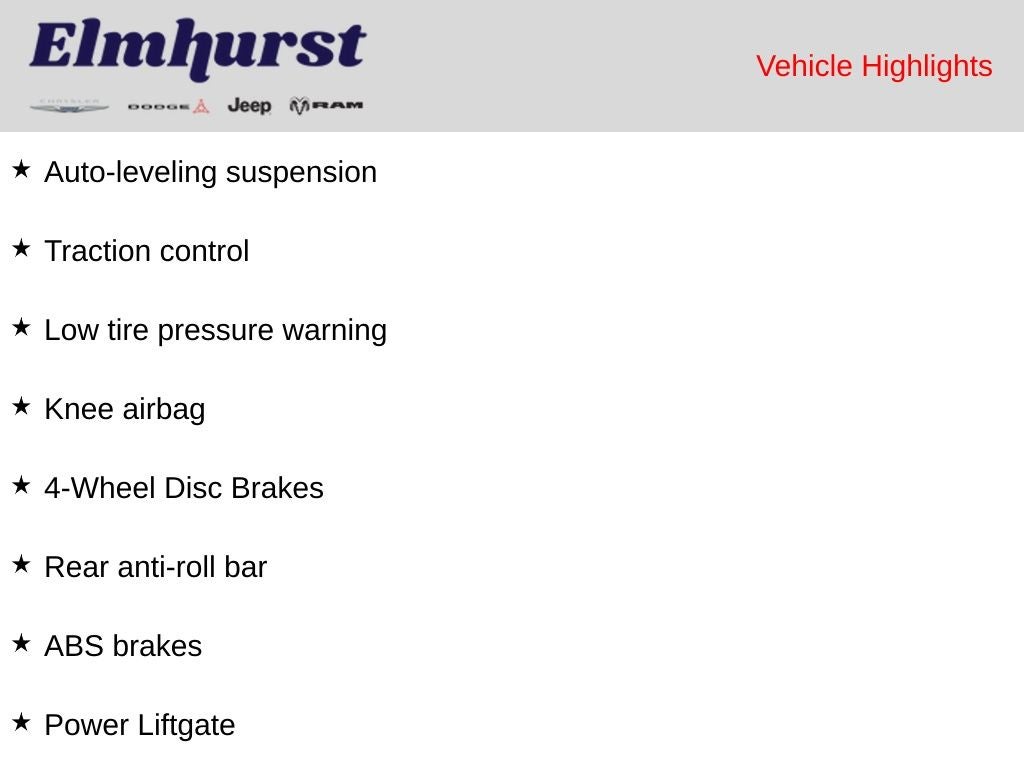 - Regenerative 4-Wheel Disc Brakes w/4-Wheel ABS, Front And Rear Vented Discs, Brake Assist, Hill Descent Control, Hill Hold Control and Electric Parking Brake