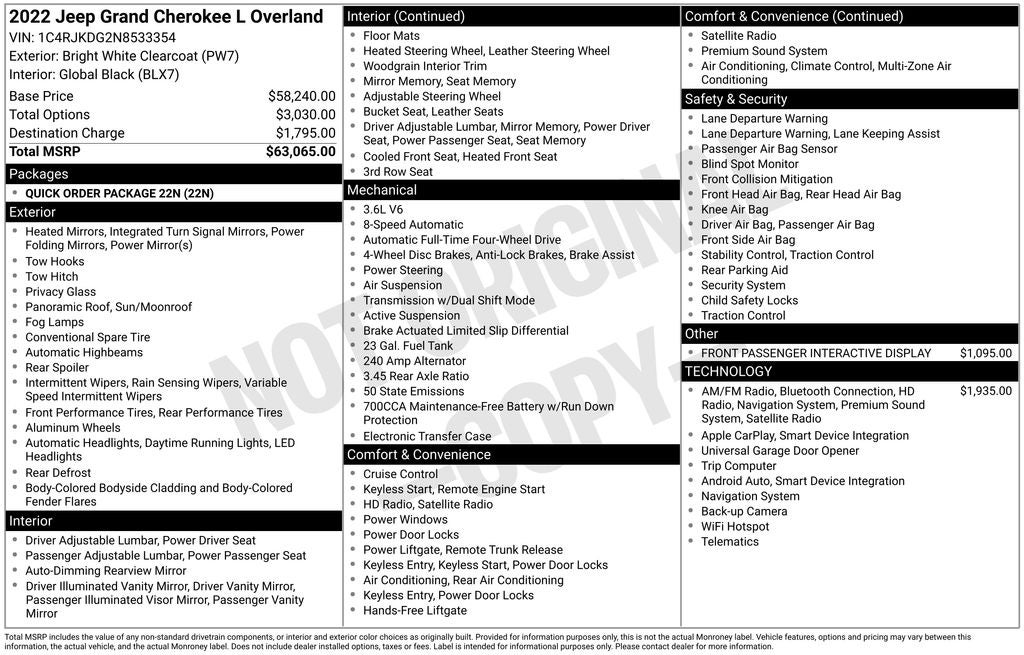 Experience the pinnacle of Jeep's legendary capability and refinement. Visit our showroom today and discover how the 2022 Jeep Grand Cherokee L Overland can elevate your driving experience.