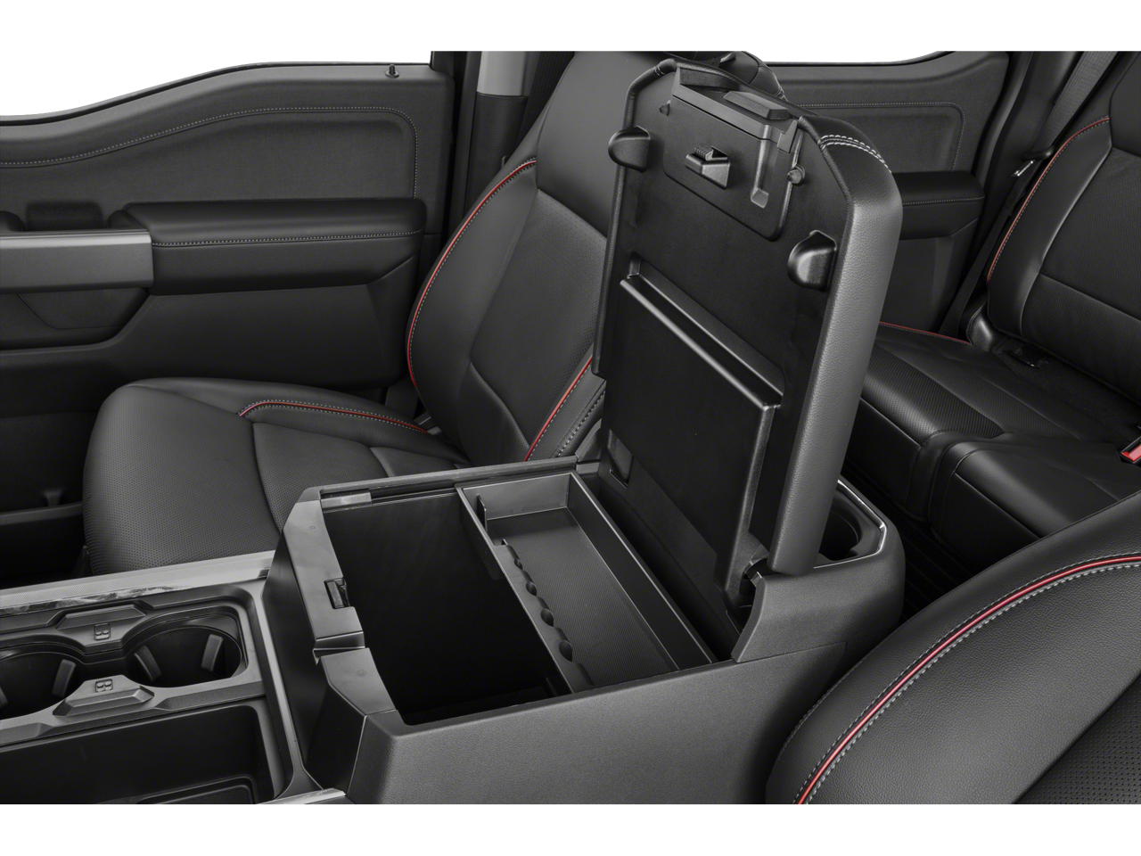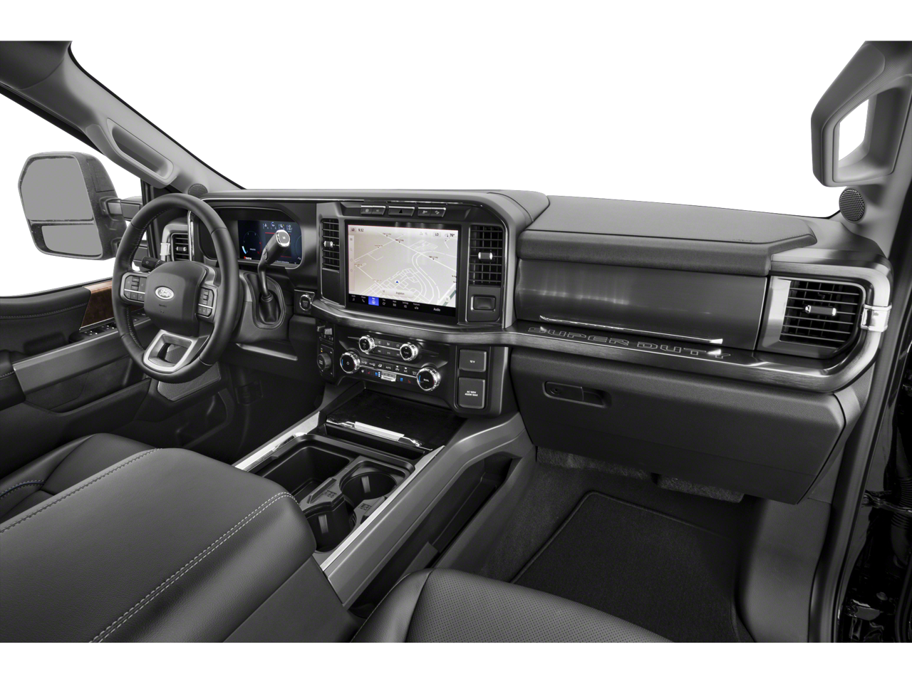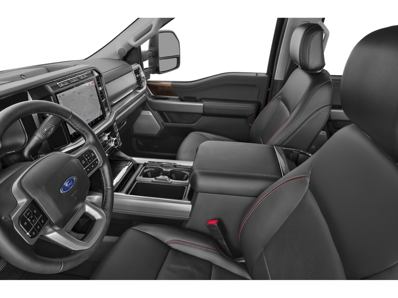 The interior of the Lariat is designed with your comfort and convenience in mind. Enjoy the premium B&O sound system, wireless charging pad, and the intuitive SYNC 4 infotainment system with enhanced voice recognition. The heated and ventilated front seats, heated rear seats, and power-adjustable pedals ensure a personalized driving experience.