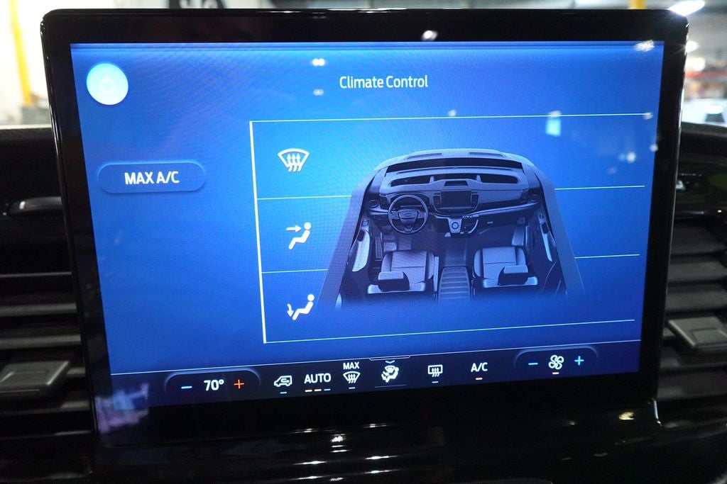 Step inside and you'll be greeted by a spacious and well-appointed interior, complete with Ebony Cloth Bucket Seats, a Large Center Console, and a premium Radio with AM/FM Stereo, SYNC 4, SiriusXM, and Navigation. The Rear Air Conditioning and Rear Window Defroster ensure the comfort of all passengers, while the Tilt and Telescoping Steering Wheel and Steering Wheel Mounted Audio Controls provide exceptional control and convenience.