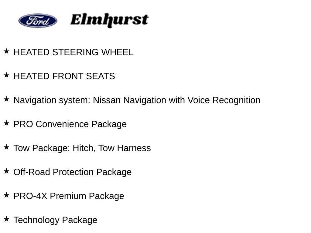 Outfitted with an impressive array of features, the Frontier PRO-4X is ready to take your driving experience to new heights. Key highlights include: