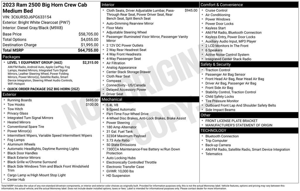 Whether you're in the market for a powerful work truck, a versatile family hauler, or a capable off-road companion, the 2023 Ram 2500 Big Horn is a remarkable choice. We invite you to visit our showroom and experience the impressive capabilities of this remarkable vehicle for yourself. Our knowledgeable sales team is ready to answer any questions you may have and help you find the perfect Ram 2500 to suit your needs.