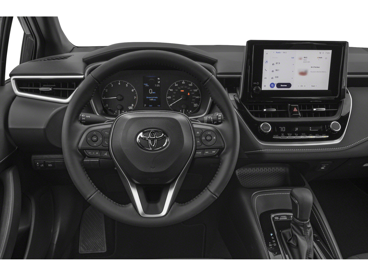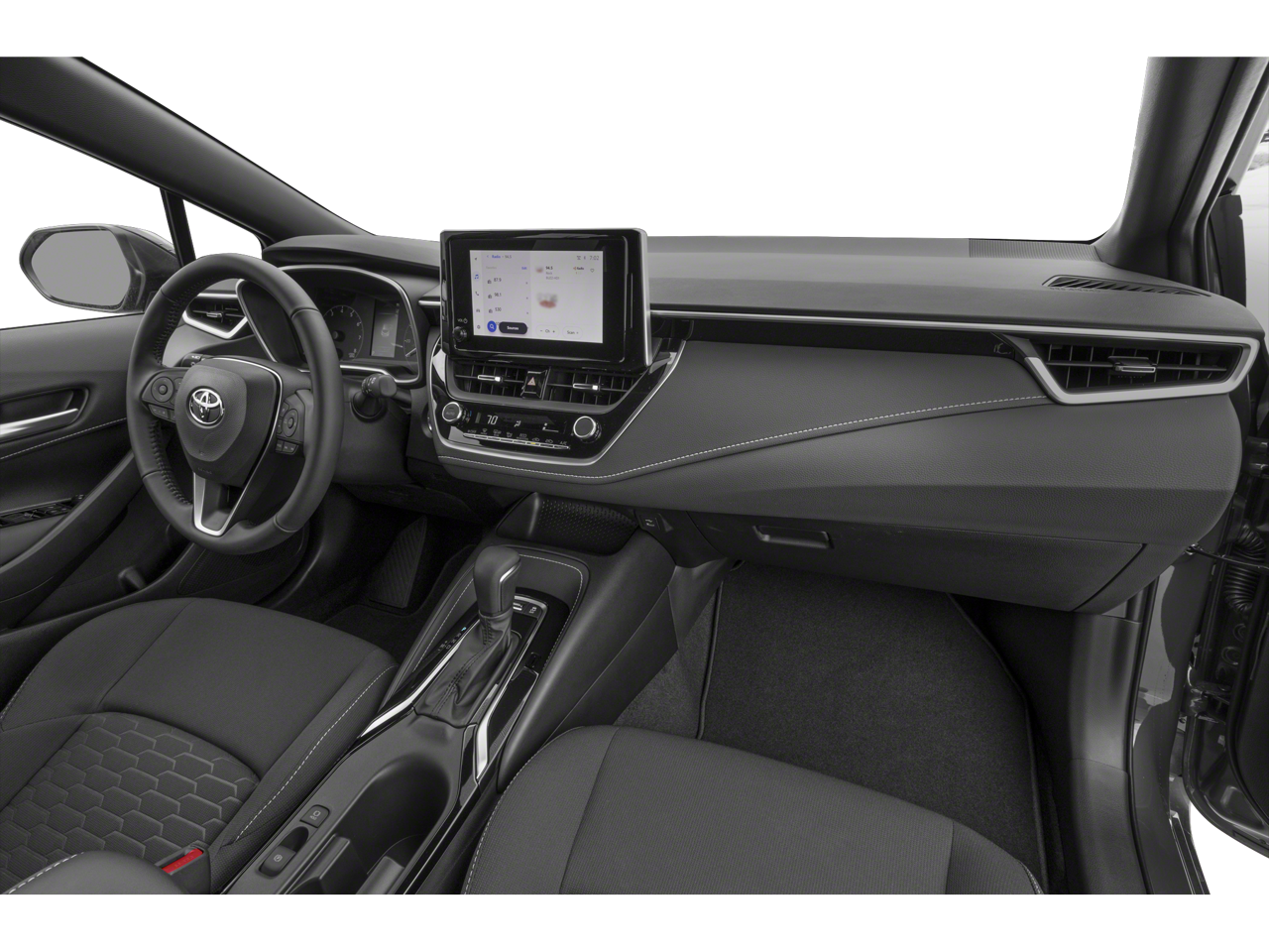 The exterior of this Corolla Hatchback SE exudes a refined and modern aesthetic, with features like Auto High-beam Headlights, Delay-off headlights, Bumpers: body-color, Heated door mirrors, Power door mirrors, Spoiler, and Turn signal indicator mirrors. Step inside and you'll be greeted by a well-appointed interior, complete with Leather Shift Knob, Leather steering wheel, Compass, Driver door bin, Driver vanity mirror, Front reading lights, Illuminated entry, and Overhead console.