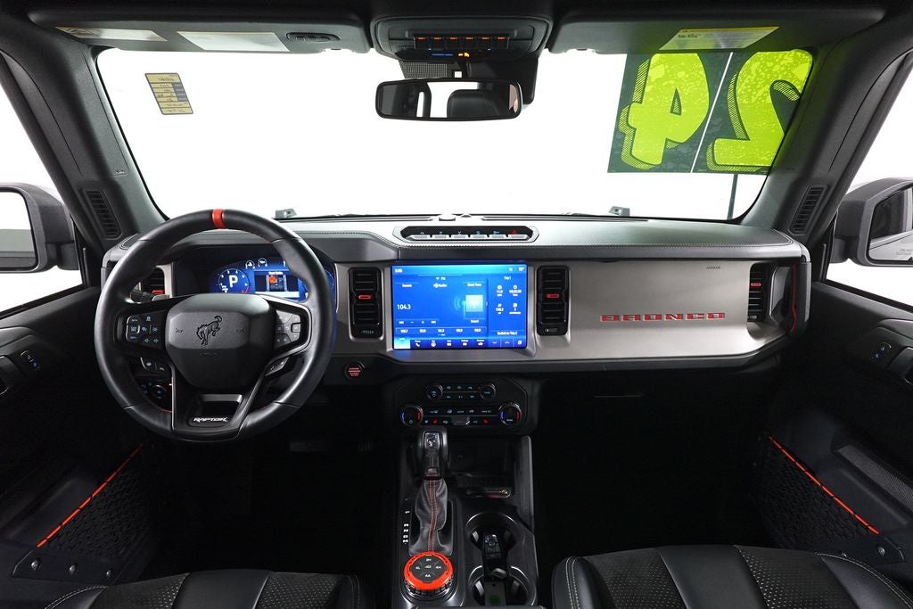 The Bronco Raptor also boasts the premium Equipment Group 374A High/Lux Package, elevating your driving experience with a suite of advanced technologies and luxurious amenities. Highlights include a navigation system, 10-speaker B&O sound system, dual-zone climate control, and a heated steering wheel.