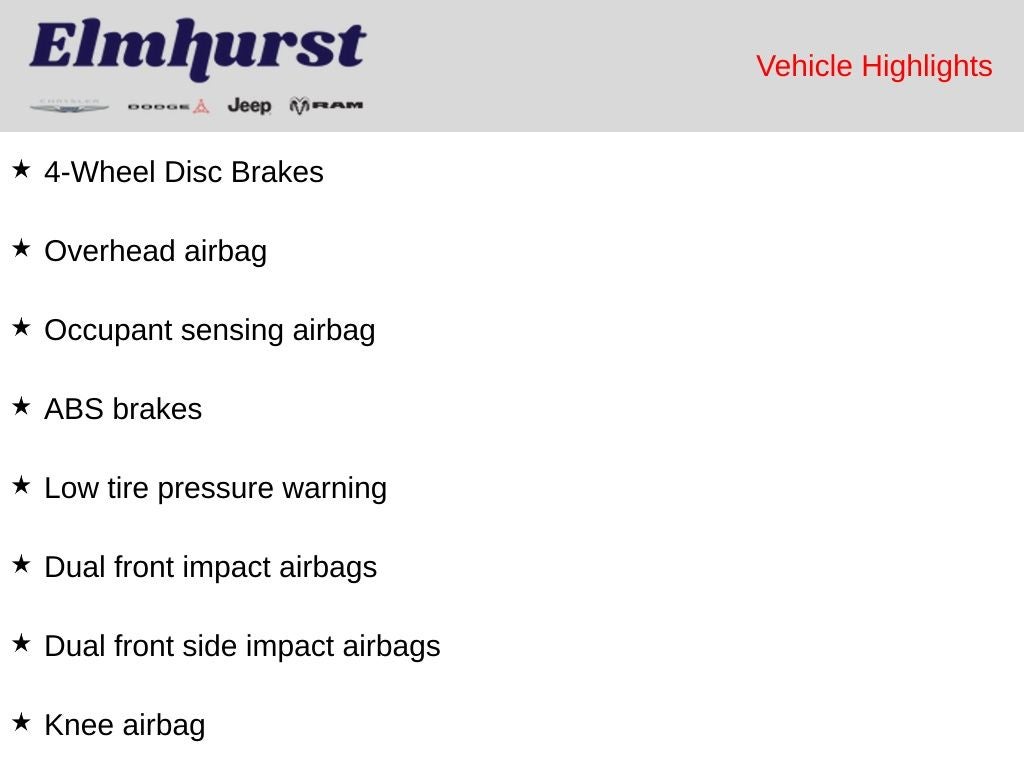 - 4-Wheel Disc Brakes w/4-Wheel ABS, Front Vented Discs, Brake Assist, Hill Hold Control and Electric Parking Brake