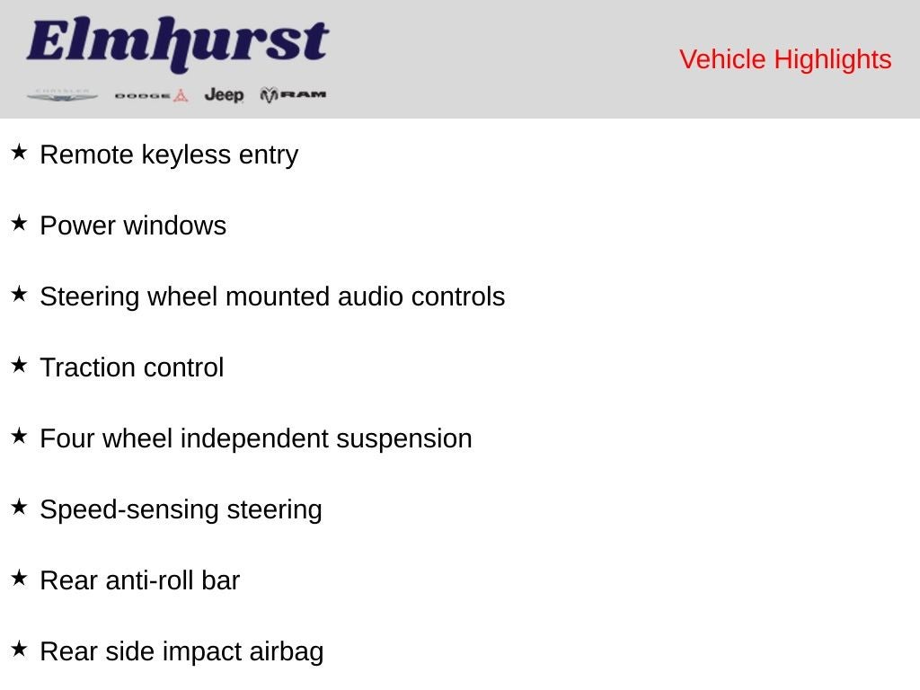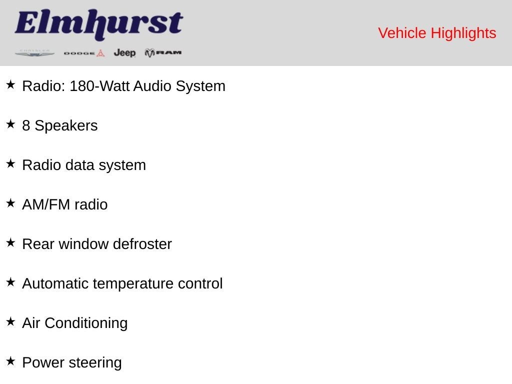 - Radio w/Seek-Scan, Clock, Steering Wheel Controls and Voice Activation